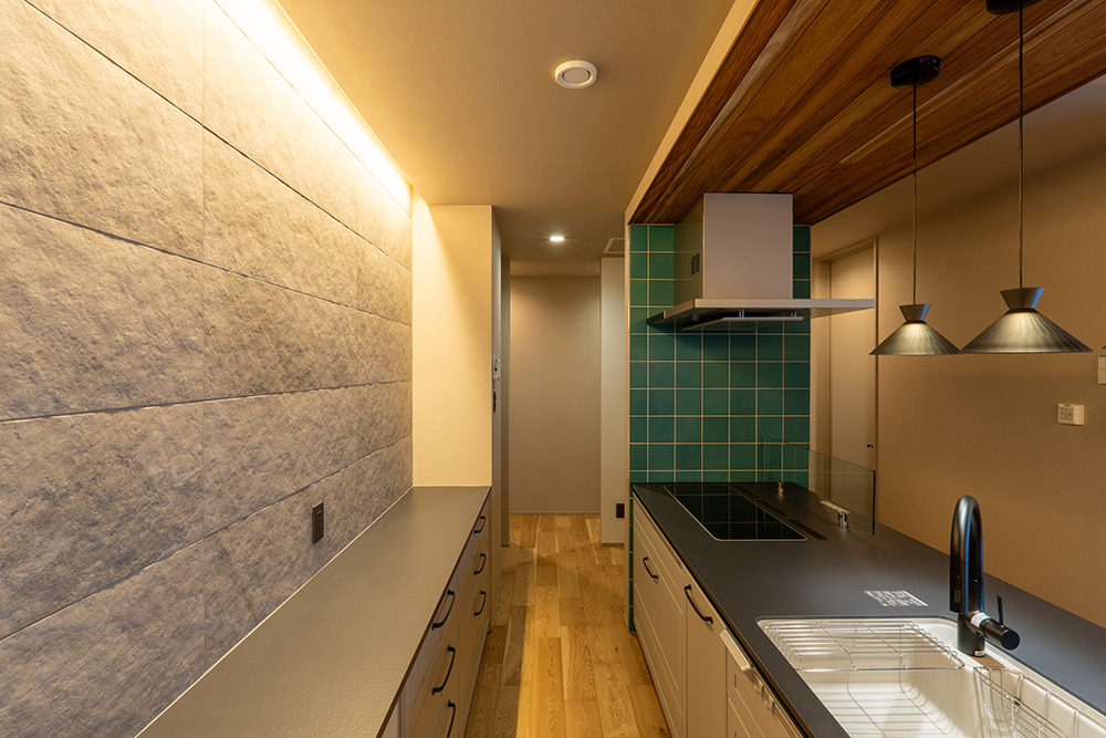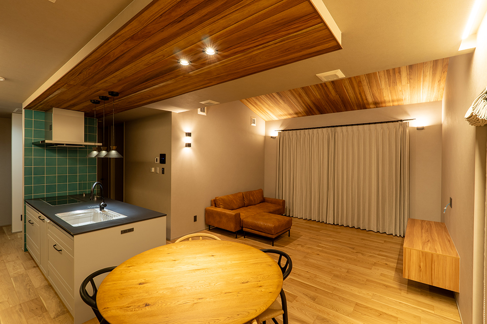 タイルと天井に貼ったアカシアの木がアクセントになっています!